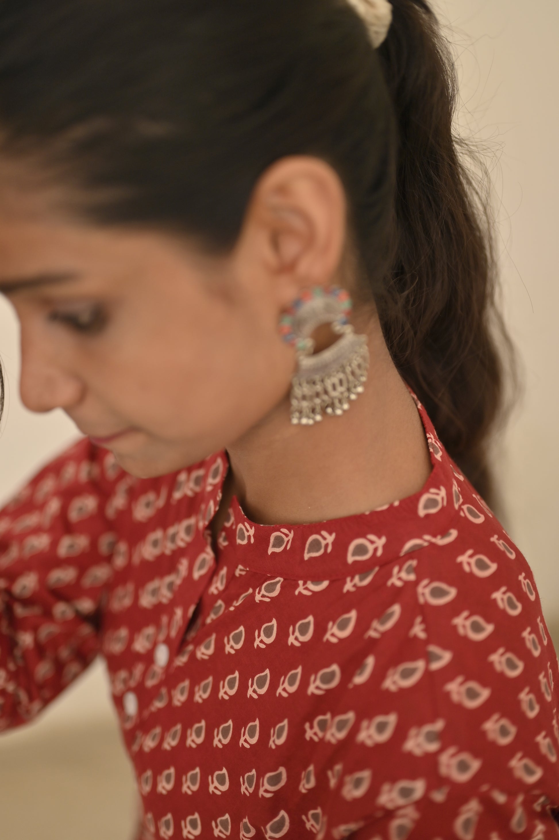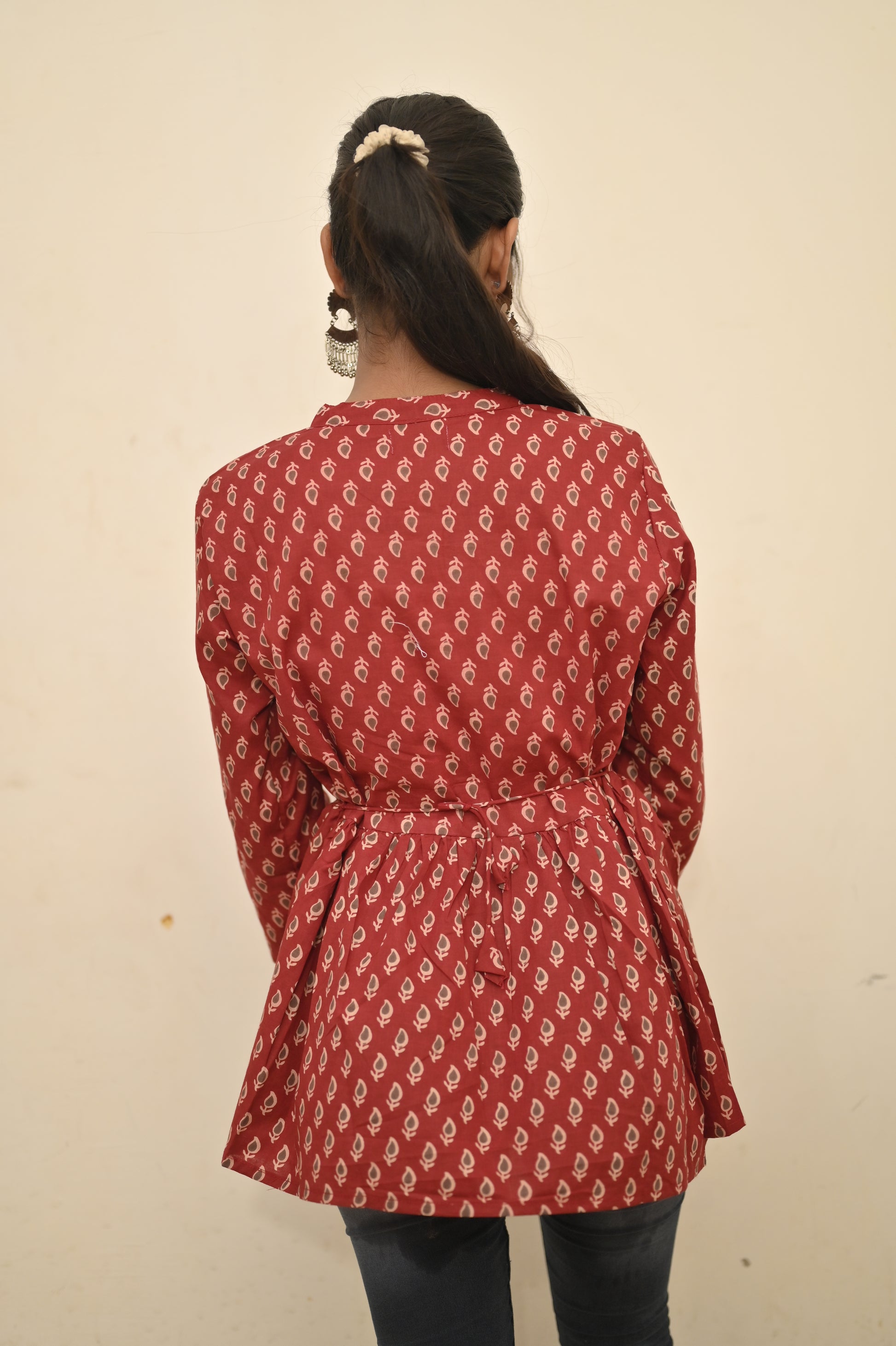 Wine Red Boho Printed Peplum Kurti – Effortless Chic Edition